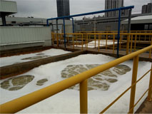 該方法是先向難降解有機物污染的原水內投加粉末活性炭混合液,使活性炭與廢水充分混合以進行吸附處理,接著向吸附處理后的廢液中投入PAC藥液進行絮凝處理,然后將絮凝后廢水進行沉降處理,最后將沉降處理后的上清液進行超濾處理。該系統(tǒng)包括原水池、吸附反應池、絮凝反應池、預沉池、中間水池、膜超濾供水泵、成套膜超濾單元、AC溶投藥裝置、PAC溶投藥裝置和PLC控制單元。